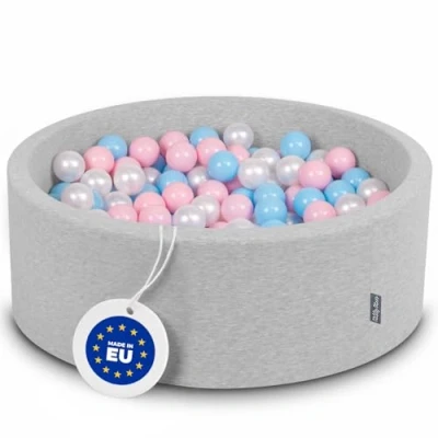 KiddyMoon 90X30cm/300 Balls ∅ 7Cm / 2.75In Baby Foam Ball Pit Made In EU, Light Grey:Baby Blue/Light Pink/Pearl