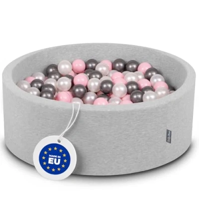 KiddyMoon 90X30cm/300 Balls ∅ 7Cm / 2.75In Baby Foam Ball Pit Made In EU, Light Grey:Pearl/Light Pink/Silver