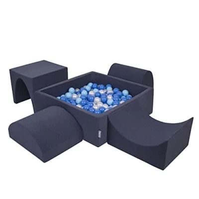 KiddyMoon Foam Playground For Kids With Square Ballpit (200 Balls ∅ 7Cm/2.75In) Soft Obstacles Course And Ball Pool, Made In The EU, Darkblue:Babyblue/Blue/Pearl