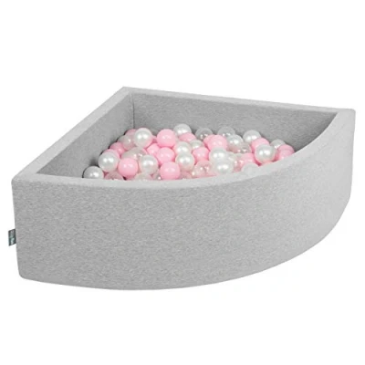 KiddyMoon Soft Ball Pit Quarter Angular 90X30cm/300 Balls ∅ 7Cm / 2.75In For Kids, Foam Pool Baby Playballs, Made In EU, Light Grey:Light Pink/Pearl/Transparent