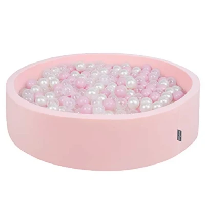 KiddyMoon Soft Ball Pit Round 120X30cm/300 Balls ∅ 7Cm / 2.75In For Kids, Foam Pool Baby Playballs Children, Made In The EU, Pink:Powder Pink Pearl Transparent