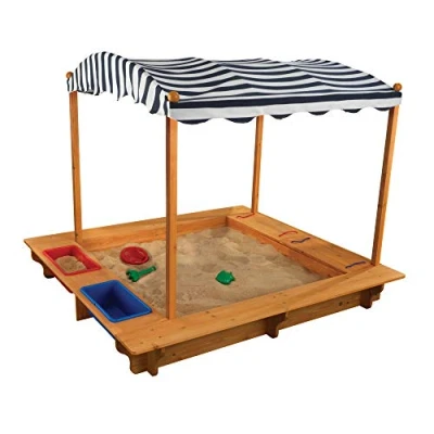 LOADS OF FUN - Kids get to dig for treasure and build sand castles in their own garden SUN SAFE - The Outdoor Sandbox includes a canvas canopy that provides shade for little explorers. The set includes two plastic bins, perfect for storing toys or holding water or sand ASSEMBLY INSTRUCTIONS INCLUDED - Packaged with detailed, step-by-step assembly instructions, your child will be outdoors and playing sooner BUILT TO LAST - Built with the child in mind, the sandbox is made of weather-resistant wood and includes a mesh cover that protects the sand when not in use. Reinforced wooden panels prevent warping and weathering A TIMELESS GIFT - Surprise somebody with this awesome play set for the summer season! The Outdoor Sandbox with Canopy will keep your children outdoors and playing in the sand for hours, Manufacturer: Kidkraft