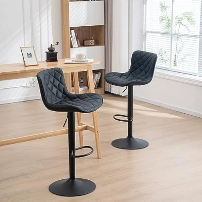 Kidol & Shellder Bar Stools Set of 2 Black Adjustable Swivel Chairs High Back Counter PU Leather Soft Cushion 8 Mins Quick Assembly Loads Up to 300lbs
