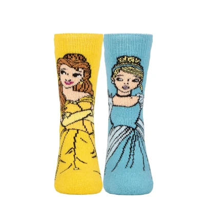 Kids 1 Pair SOCKSHOP Heat Holders Disney 1.6 TOG Lite Beauty and the Beast Cinderella Thermal Socks Blue / Yellow 9 12