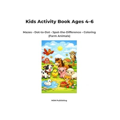 Kids Activity Book Ages 46: Mazes Dot to Spot the Difference Coloring (Farm Animals)