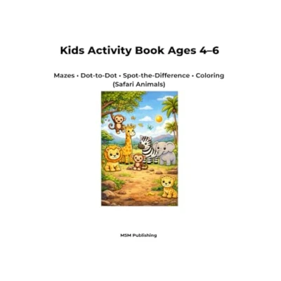 Kids Activity Book Ages 46: Mazes Dot to Spot the Difference Coloring Pages (Safari Animals)