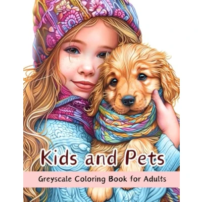 Kids and Pets Coloring Book: 50 Greyscale Pages for Adults Beautiful Portraits Relaxation Stress Relief