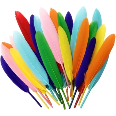 Large craft feathers for children – 40 big colourful feathers for painting, collage materials, card making and childrens art projects. Easy to cut, glue and layer for hands-on creative activities. Long craft feather quills for kids – coloured bird feathers with visible structure for crowns, headdresses, scrapbooks, wall displays and decorative school projects. Art feathers kids love for sensory play, masks and themed crafts – long feathers in rainbow colours, lightweight and easy for small hands to grip, bend and arrange on paper or foam. Large feathers suited to carnival costumes, easter crafts, classroom displays and EYFS or KS1 projects – coloured feathers that support fine motor skills, pattern making and imaginative design. 40-piece mixed colour feather pack for arts and crafts, bird crafts for kids, party projects and everyday creative use – enough for group activities and classroom supplies., Manufacturer: Kids B Crafty