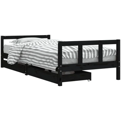 Kids Bed Frame with Drawers Black 90x200 cm Solid Wood Pine Vidaxl