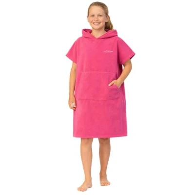 Kids Changing Robe Quick Drying With Hood and Pocket Poncho Towel Ideal For Beach Swimming Surfing, Pink, Age 6 9