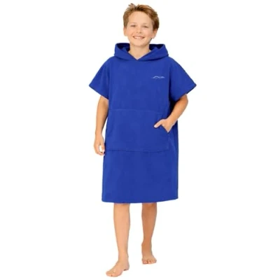 Kids Changing Robe Quick Drying With Hood and Pocket Poncho Towel Ideal For Beach Swimming Surfing, Royal Blue, Age 6 9