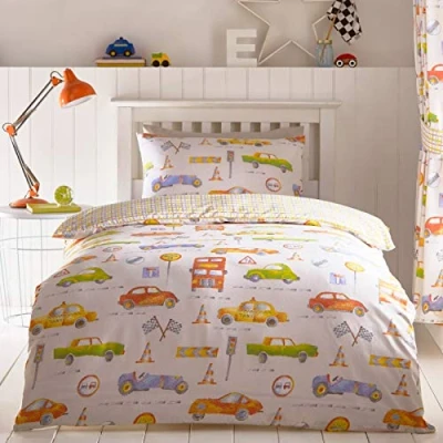 Kids' Club Bedding Cars Motor Transport Colourful Reversible Duvet Cover Set Range Multi Toddler
