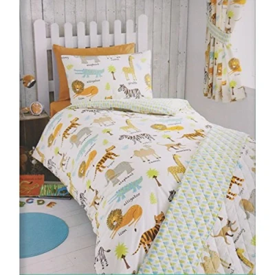 Amazon MarketplaceGreen and blue leaf design on reverse. Available in single and double sizes. 1 x Single Duvet Cover (135 x 200cm) and 1 Pillowcase (50 x 75cm) Material: 50% Cotton, 50% Polyester Machine washable, can be tumble dried.