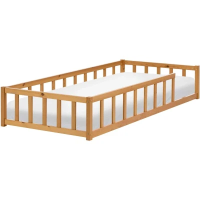 Kids Floor Bed Brown Pine Wood EU Single Size 3ft with Slatted Frame for Toddler MEYMAC