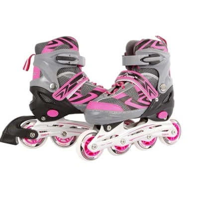 Kids Globe Street Rider Inline Skates (Inline Skates) Pink/Grey, Adjustable from Size 35 38, ABEC7 Aluminium Frame 720235