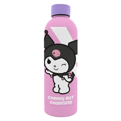HIGH QUALITY MATERIAL: Made with 100% BPA free stainless steel, this canteen ensures durability and safety for your favorite drinks. PRESERVES TEMPERATURE - Designed to keep your drinks temperature longer, this bottle is perfect for enjoying your favorite drinks anytime, anywhere. MODERN KUROMI DESIGN: With unique style, this water bottle is not only practical but also a collectible piece for Kuromi fans. SOFT AND NICE TOUCH: The surface of the bottle has a smooth touch finish, providing a special and comfortable feeling when holding it. PORTABLE AND PRACTICAL: Its format is ideal for taking it anywhere, whether it is school, work or outdoor activities. Don't be without it!