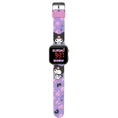 DIGITAL KIDS WATCH: Perfect for little Kuromi lovers, this children's digital watch combines fun and functionality, making it ideal for any occasion. COMPLETE FUNCTIONS: Equipped with time functions in 12-hour format and full date mode, this kids LED watch helps girls stay organized and punctual in all their daily activities. DURABLE BATTERY: With a long battery life, this watch ensures reliable operation throughout the day, eliminating the worry of frequent recharges and allowing for extended use. LIMITED WATER RESISTANCE: Watch is not waterproof. It can tolerate only small splashes, but should not be immersed in water. PERFECT FOR GIFT: With its original design and its Kuromi theme, this girl's digital watch is the perfect gift for birthdays, Christmas or other special occasions, which is sure to make any little fan smile.