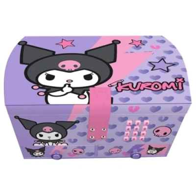KUROMI SECRET JEWELRY BOX - Official Sanrio design jewelry box, perfect for girls fans of Kuromi. STORE YOUR TREASURES: Ideal space for storing necklaces, bracelets, rings and small accessories. FUN AND ORIGINAL DESIGN: Colorful finish with Kuromi artwork that little ones will love. PERFECT GIFT FOR GIRLS - A practical and cute choice for birthdays, Christmas or any special occasion. LICENSED KIDS LICENSING PRODUCT: guarantee of quality and authenticity in a unique children's jewellery box.