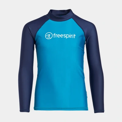 The slim fit and stretchy rash vest delivers UPF 40+ for additional sun protection. It also prevents rubbing and abrasion on surfboards, SUPs and bodyboards. For kids who love to be constantly in and out of the water, this comfortable layer will shield their skin so they can spend longer catching waves. Long sleeve junior rash vest Lightweight, quick-drying stretch fabric Protects skin from sun and abrasion rashes during watersports Flatlock seams for next-to-skin comfort Slim fit 40+ UPF sun protection Colour: Blue/Navy