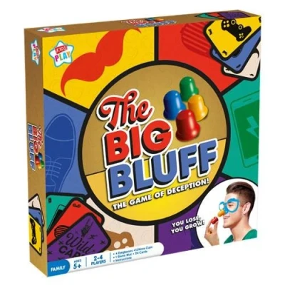 Prove you're not Pinocchio and bluff your way to victory in Kids Play's The Big Bluff Family Game. Play your cards and bluff when you're a card short. Each time you're caught bluffing you add a cup to your nose. At the end of the game, the shortest nose wins.. 1 x Kids Play The Big Bluff Family Game. 2-4 players. Contains: 4 eyeglasses, 12 nose cups, 1 game mat, 24 cars, instructions. Suitable for ages 5+. Not suitable for children aged 3 years & under-small parts=choking hazard