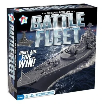 Get ready to seek and destroy with the Kids Play Battle Fleet Board Game. A strategy game for 2 players, position your fleet on the grid, and try to sink your opponent's ships before they sink yours!. 1 x Kids Play Battle Fleet Board Game. For 2 players. Includes 2 game boards, 10 warships, 252 game pegs, instructions. Suitable for ages 5+. Not suitable for children under 36 months-small parts=choking hazard