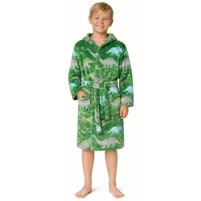 Kids Soft Fleece Bathrobe Hooded Warm Dressing Gown Flannel Bath Robe Boys Girls, 4 5 Years, Dinosaur
