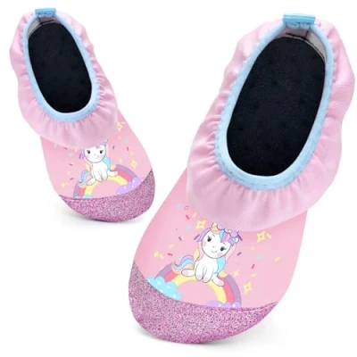 Kids Swim Water Shoes for Girls Toddlers Baby Aqua Socks Quick Dry Pool Beach Barefoot Children(Unicorn Pink 20/21