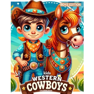 kids Western Cowboys Coloring book: wild west theme, ages 4 8, easy to color, boys edition (Western Wonders Series)