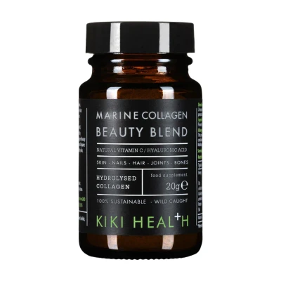 KIKI Health Marine Collagen Beauty Blend (20g) is a premium supplement with 7500mg Type 1 hydrolysed marine collagen, natural vitamin C from organic Camu Camu and Acai, plus hyaluronic acid to support skin brightness, hydration, and elasticity, ideal for maintaining youthful, healthy skin, nails, joints, and bones.