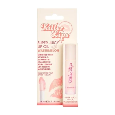 Killer Lips Super Juicy Lip Oil Watermelon Crush 3.8ml Hydrating Treatment with Vitamin E, C & Hyaluronic Acid Non Sticky, High Shine, Nourishing Tinted Gloss