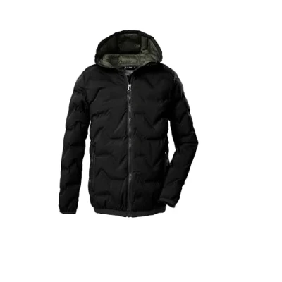 Children's functional jacket in modern down look with hood 10,000 mm hydrostatic head, wind and water resistant Elasticated hem and cuffs Zip with chin guard, side zip pockets Thick filling and inner lining PFAs-free impregnation - good for you and the environment