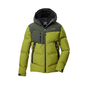 Children's functional jacket in down look with hood 10,000 mm hydrostatic head, wind and water resistant Adjustable cuffs, practical zip pockets Zip with chin guard PFAs-free impregnation - good for you and the environment Fashionable reflective elements