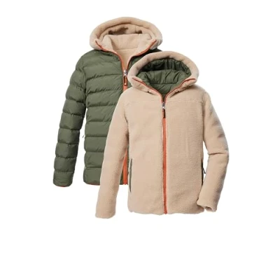 Children's reversible jacket in down look 10,000 mm hydrostatic head, wind and water resistant Elasticated hem and cuffs Zip pockets on both sides Cuddly teddy fur inside and in the hood Fashionable reflective elements