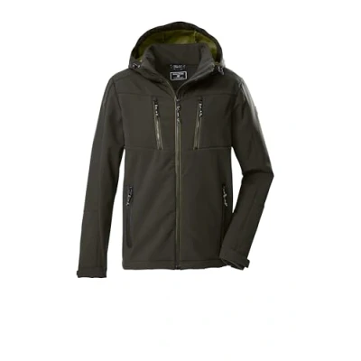 Killtec KOW 79 MN SFTSHLL JCKT Men's Softshell Jacket with Zip Off Hood, Dark Olive, S, 43323 000