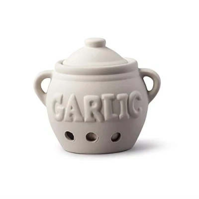 Premium quality garlic bulb and cloves store for keeping garlic fresh and ready to use in the kitchen This traditional design garlic cellar has a secure fitting lid to keep cloves in a dark cool environment The holes allow air to flow keeping garlic fresh The porous ceramic material combined with the air circulation and the darkened container helps eliminate mould growth Durable and versatile serve ware classic crockery vegetable holder super for home and catering use unglazed finish High quality vitrified ceramic