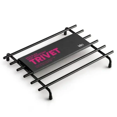 Protect your surfaces in style with the Kilo Large Trivet Black. Featuring a generous surface area and raised design, it’s perfect for safely holding hot pans, dishes, and bakeware. Crafted with a premium heavy-duty satin black finish, this trivet combines durability with modern elegance. Non-slip, non-scratch rubber feet keep it stable and gentle on countertops, while its odour and stain resistant properties ensure it stays looking fresh meal after meal. A must-have for any busy kitchen.Non-scratch, non-lip feet.Dimensions: 32cm x 24cm.Stain and odour resistant.