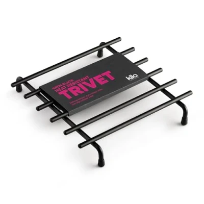 Harts of SturProtect your surfaces in style with the Kilo Medium Trivet Black. Featuring a generous surface area and raised design, it’s perfect for safely holding hot pans, dishes, and bakeware. Crafted with a premium heavy-duty satin black finish, this trivet combines durability with modern elegance. Non-slip, non-scratch rubber feet keep it stable and gentle on countertops, while its odour and stain resistant properties ensure it stays looking fresh meal after meal. A must-have for any busy kitchen.Non-scratch, non-lip feet.Dimensions: 33cm x 30cm.Stain and odour resistant.