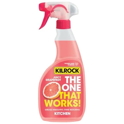 Kilrock THE ONE THAT WORKS! Kitchen Cleaner Spray 750ml Juicy Grapefruit Removes Grease, Burnt on Food, Smears & Smudges Use Surfaces, Hobs, Cookers, Cupboards, Hoods, Splash Backs