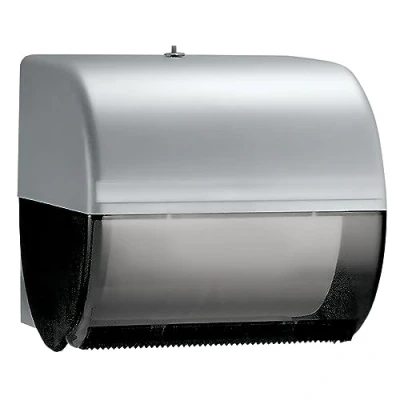 Kimberly Clark Professional Omni Manual Roll Paper Towel Dispenser, Smoke / Black, 1 / Case Measuring 10.5" x 10" x 10", this is a compact paper towel dispenser, so it fits in areas with limited wall space Holds up to 1,000 feet of paper towels (from Kleenex and Scott Brands) and guests can take the length of towel they need No-touch dispensing system helps reduce the spread of germs, because guests only touch the towel they use (all without the need of batteries) Durable dispenser includes an easy-loading design, locking cover and stainless steel internal parts to reduce corrosion; ADA compliant when properly installed and when using proper compatible product