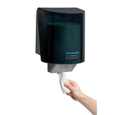 One grey Kimberly-Clark Professional centrefeed roll wiper dispenser Dispenses wipers without the need to touch the dispenser, helping to reduce contamination and the spread of germs Our Kimberly-Clark dispenser complies with food safety standards for greater workplace hygiene The centrefeed roll dispenser is wall-mountable, ideal for cleaning stations Compatible with a variety of Kimberly-Clark Professional wipers and hand towels