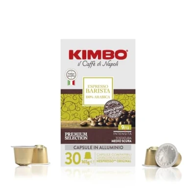 Kimbo Coffee, Espresso Barista 100% Arabica, 30 Capsules Compatible with Nespresso Original Machine, Medium Dark Roast, 9/13, Italian Coffee Pods, 1 x