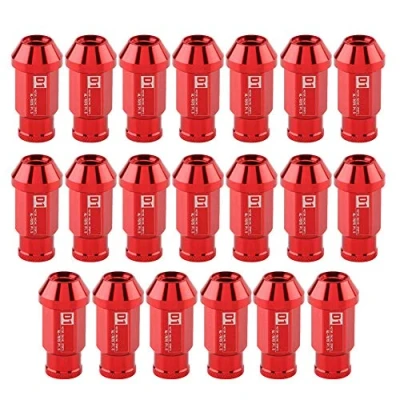 KIMISS Aluminum Car Tire Screw, 20Pcs wheel Nuts Secure Racing Nut M12X1.5 (Red)//nuts red m12 1.25 lock. acorn x 1.25, 21mm