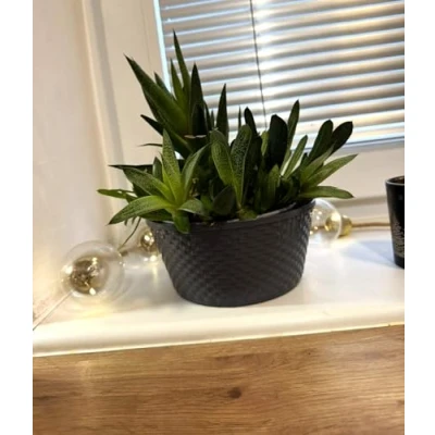 Set of 3 rattan effect plant bowls for flower arrangements, floral mass or foam is not included Colour: grey Plastic