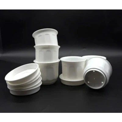 Pack of 6 mini flower pots with saucers for planting and attracting small plants Colour: white Other colours: grey, brown Outer diameter 6.5 cm, inner diameter 5 cm, height 5.5 cm