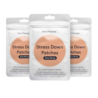 Kind Patches Stress Down Extra Strong Stress, Anxiety & Balanced Cortisol Levels Support Ashwagandha, Holy Basil Adaptogens 90 Vegan Patches, 3 Months Supply
