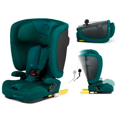 Kinderkraft FIX2GO car seat i Size 76 150 cm (15M 12J), Foldable, Carrying Handle, ISOFIX+Top Tether, SAFERIDE Sensor, SPS+, H Guard+, 5 Position Reclining, Air Flow, Washable Cover, Green