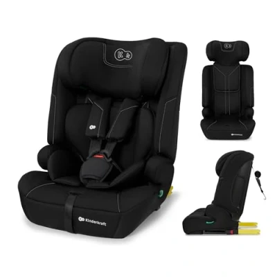 Kinderkraft Safety FIX 3 I Size 76 150 cm Car Seat, 15 Months 12 Years, Booster Child Isofix, Adjustable Headrest, Group 1 2 3, Extra TOP Tether, 5 Point Harness, Modular Insert, Black
