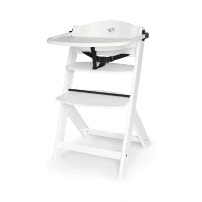 Kinderkraft Wooden Highchair 3 in 1 ENOCK, Multifunctional Baby Chair, Ajustable Heigh and Footrest, Safety Harness, with Detachable Tray, for Children up to 10 Years, White