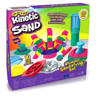 ONE & ONLY KINETIC SAND: The original magical moving play sand that kids love So satisfying to touch - it magically sticks together for easy shaping & cleanup. Never dries out so kids can play again & again 2LBS COLOURED SAND & 10 TOOLS: Unlock a world of mesmerising sand art and amazing effects with Pink, Yellow & Teal sand, 10 moulds and tools, & an exclusive satisfying squisher tool for limitless creations MIX, MOULD & CREATE: Experiment with the three exclusive cutter tools to create mesmerizing sand effects. Layer, carve, slice and flow to transform colourful sand and reveal stunning designs ENCOURAGE CREATIVITY: Encourage fine motor skills and pretend play through tactile sensory play as kids mould and shape Made from natural sand and magically sticks together for easy clean up Includes: 2lb Kinetic Sand, 1 Squisher, 1 Crinkle Cutter, 1 Shape Shifter, 1 Scooper, 1 Knife, 1 Dome Cutter, 1 Grid Cutter, 1 Spread Cutter, 1 Cylinder Mould, 1 Dome Mould, 1 Storage Bag GREAT GIFTS FOR KIDS: Kinetic Sand toys are great building toys gifts for creative kids Alternative to kids crafts, slime kit, modeling clay, & fidget toys. Add to your pretend play, craft kits and learning games, Manufacturer: Spin Master