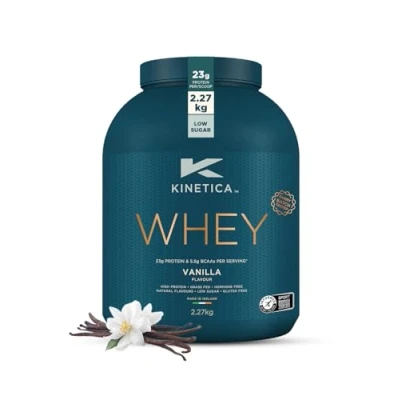 Kinetica Vanilla Whey Protein Powder 2.27kg 23g per Serving 76 Servings Sourced from EU Grass Fed Cows Superior Mixability & Taste